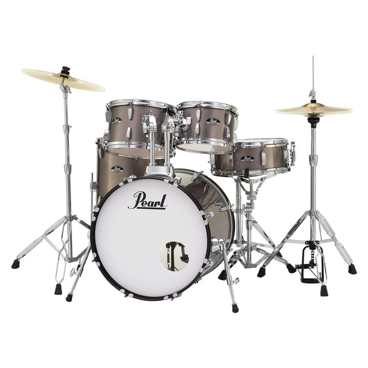 - Juego de batería completo: la batería Roadshow de Pearl incluye todo lo que necesitas para empezar a tocar la batería nada más sacarla de la caja. Este juego incluye tambores, accesorios, platillos y trono de batería. Incluso incluimos baquetas y una bolsa para baquetas para completar el juego de batería.