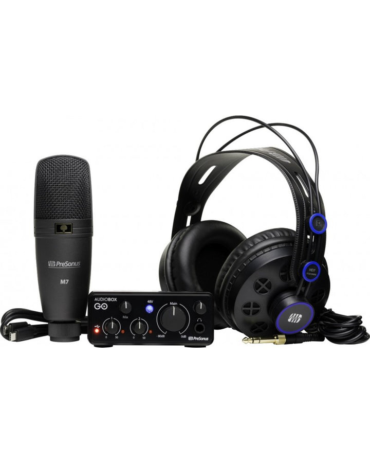Interfaz de audio USB AudioBox GO: interfaz de audio ultracompacta sorprendentemente potente para rendimiento y producción de música portátil. Software de grabación incluido: Studio One 6 Artist Edition PreSonus Micrófono M7:...